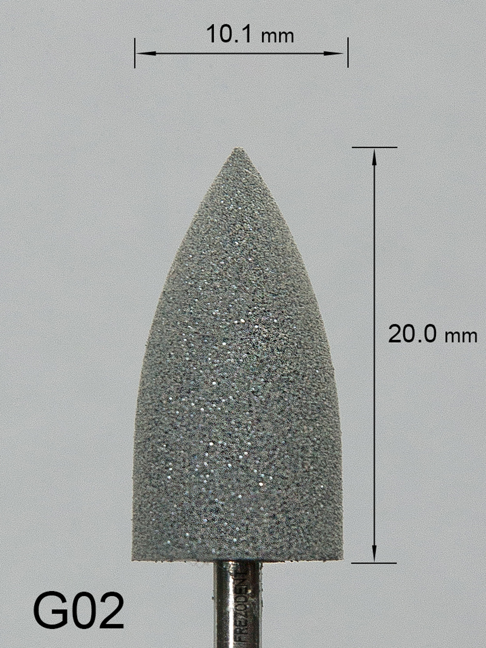 Dzięki stożkowemu kształtowi oraz optymalnym wymiarom (10x20 mm), instrument pozwala na wygodną pracę zarówno na dużych płaszczyznach płyty protezy, jak i w miejscach trudniej dostępnych.
