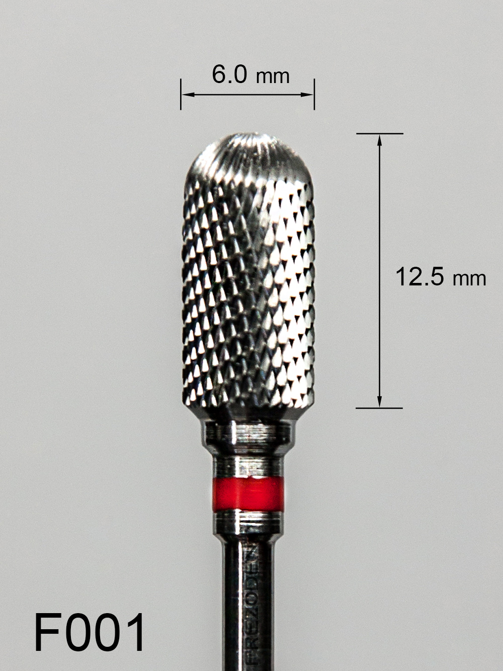 Model F001 posiada drobne nacięcie krzyżowe (oznaczone czerwonym pierścieniem), które umożliwia dokładną, kontrolowaną obróbkę bez nadmiernego szarpania materiału.