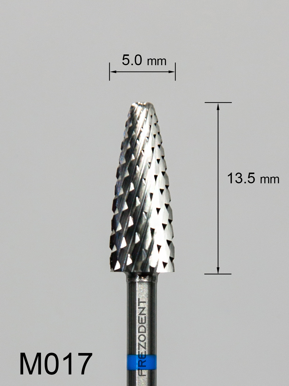 Profesjonalny frez protetyczny o kształcie soczewkowym, stworzony do wszechstronnej obróbki twardych materiałów w technice dentystycznej. Model M017 posiada krzyżowe średnie nacięcie (oznaczone niebieskim paskiem), które gwarantuje stabilne i szybkie skrawanie. Mniejsza średnica robocza (5,0 mm) pozwala na bardziej precyzyjne dotarcie do detali i krawędzi niż frezy o średnicy 6,0 mm, zachowując jednocześnie wysoką wydajność usuwania materiału.Dzięki wypukłemu kształtowi (soczewkowemu) i długości roboczej 13,5 mm, ten frez do metalu i akrylu jest idealny do formowania anatomicznych konturów, opracowywania zaokrąglonych powierzchni oraz szybkiego usuwania nadlewów. Jest to doskonałe narzędzie do prac wymagających balansu między zgrubną obróbką a precyzją.