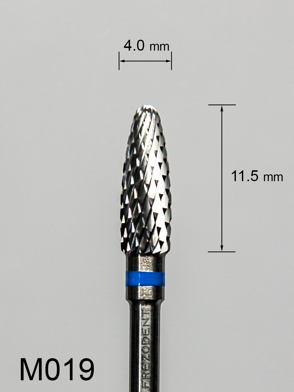 Frez węglikowy M019 z krzyżowym średnim nacięciem (niebieski pasek) – kształt wypukły.