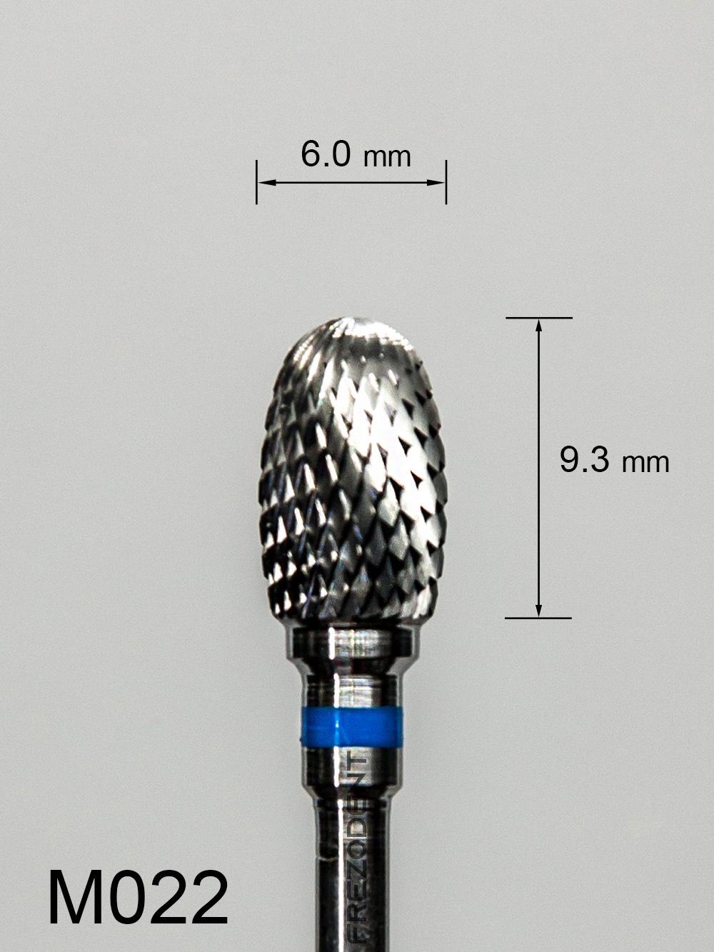 Frez węglikowy M022 z krzyżowym średnim nacięciem (niebieski pasek) – kształt owalny.