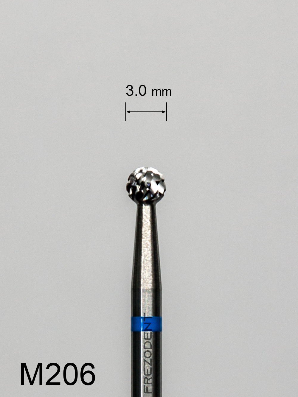 Profesjonalny frez protetyczny o kształcie idealnej kuli i małej średnicy, stworzony do precyzyjnej i kontrolowanej obróbki twardych materiałów w technice dentystycznej. Model M206 posiada krzyżowe średnie nacięcie (oznaczone niebieskim paskiem), które zapewnia efektywne i stabilne skrawanie, minimalizując ryzyko zapychania się. Średnica robocza (3,0 mm) gwarantuje wysoką precyzję niezbędną do modelowania detali oraz do opracowywania niewielkich zagłębień, gdzie wymagana jest maksymalna kontrola.Dzięki kulistemu kształtowi (3 mm), ten frez do metalu i akrylu jest niezastąpiony przy opracowywaniu gniazd, formowaniu retencyjnych zagłębień oraz modelowaniu precyzyjnych, kulistych krzywizn w podbudowach metalowych i akrylowych.