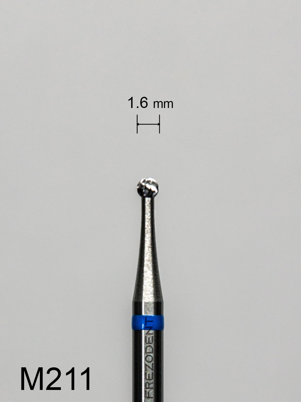 Profesjonalny frez protetyczny o mikroskopijnych wymiarach, stworzony do najbardziej precyzyjnej i kontrolowanej obróbki twardych materiałów w technice dentystycznej. Model M211 posiada krzyżowe średnie nacięcie (oznaczone niebieskim paskiem), które zapewnia efektywne i stabilne skrawanie, minimalizując ryzyko zapychania się. Ultrasmukła średnica robocza (1,6 mm) gwarantuje wyjątkową precyzję niezbędną do modelowania najdrobniejszych detali oraz do opracowywania mikrozagłębień, gdzie wymagana jest absolutna kontrola i minimalny rozmiar narzędzia.Dzięki kulistemu kształtowi (1,6 mm), ten frez do metalu i akrylu jest niezastąpiony przy opracowywaniu mikrogniazd, formowaniu retencyjnych zagłębień oraz modelowaniu delikatnych, kulistych krzywizn w precyzyjnych pracach protetycznych, np. w elementach zamków i zasuw.