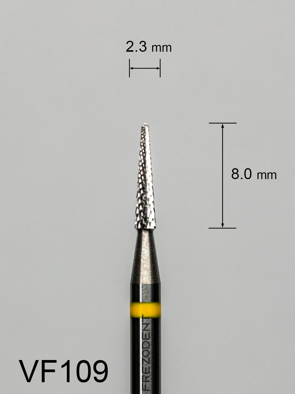 Frez węglikowy VF109 z bardzo drobnym krzyżowym nacięciem i żółtym paskiem.