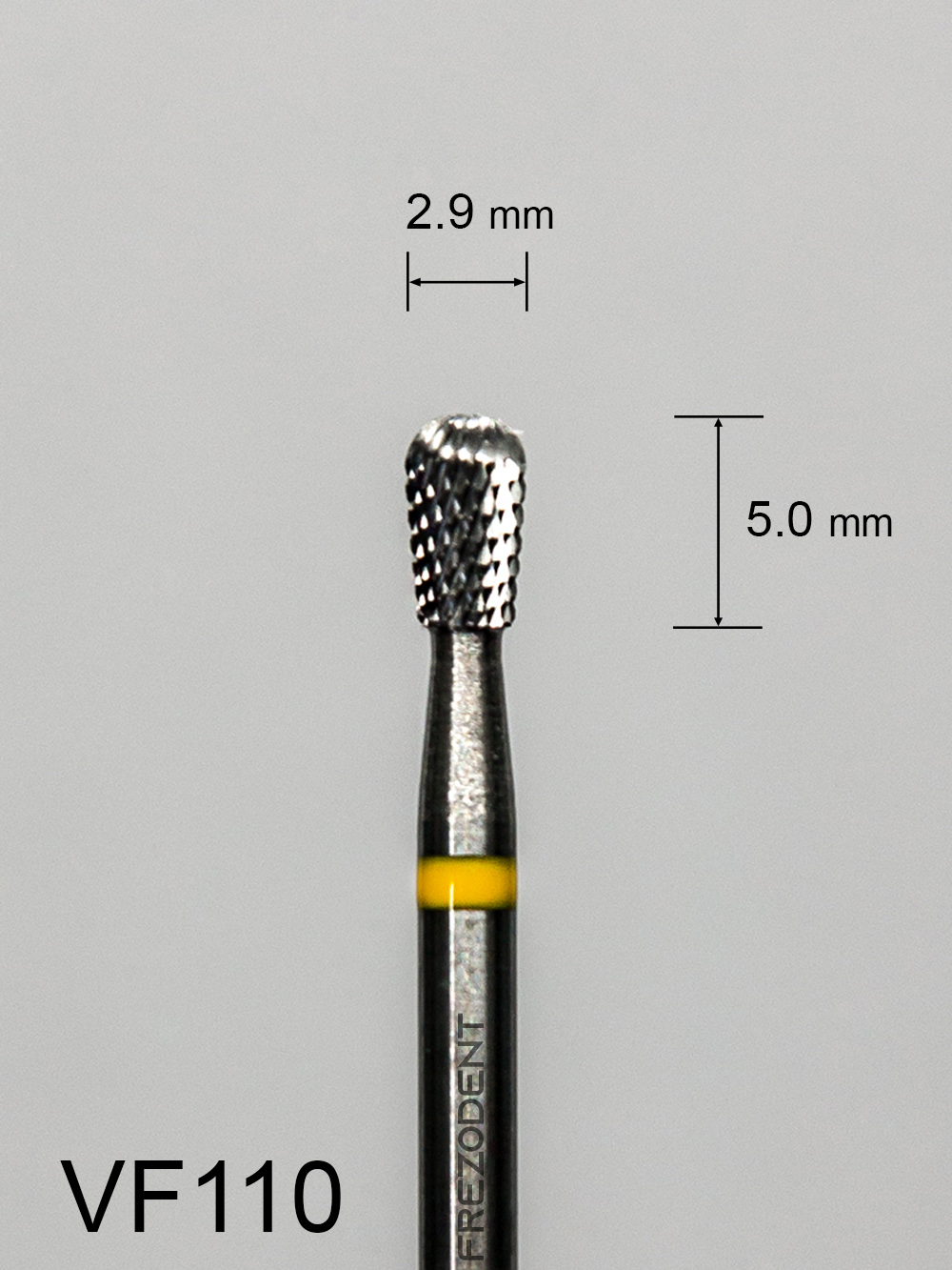 Frez węglikowy VF110 z bardzo drobnym krzyżowym nacięciem i żółtym paskiem.