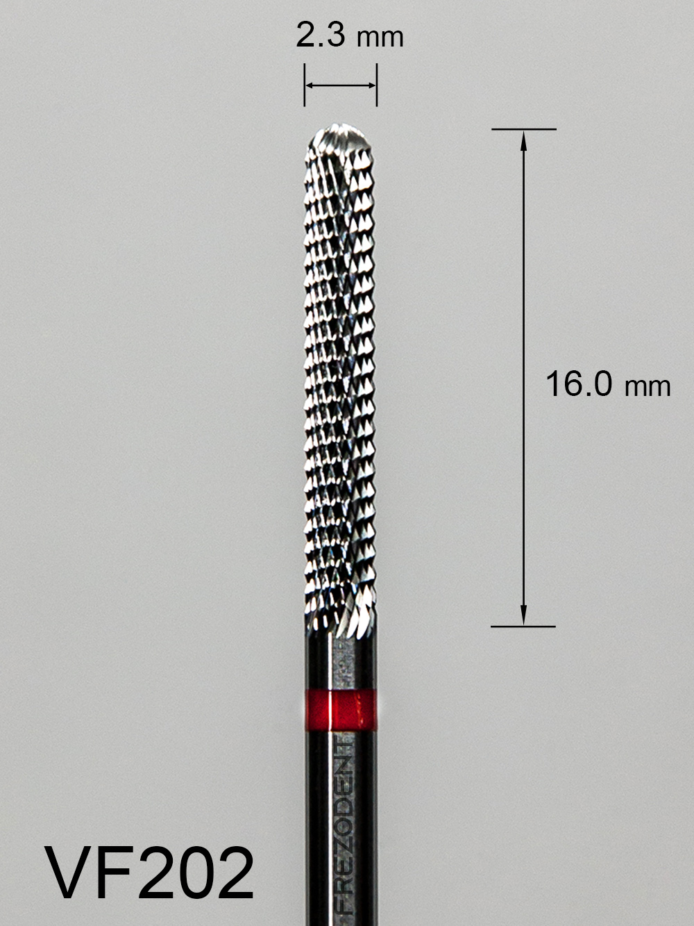 Frez węglikowy VF202 wałcowy z zaokrąglonym końcem z "diamentowym" spiralnym nacięciem (czerwony pasek).
