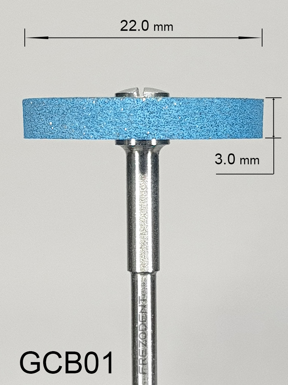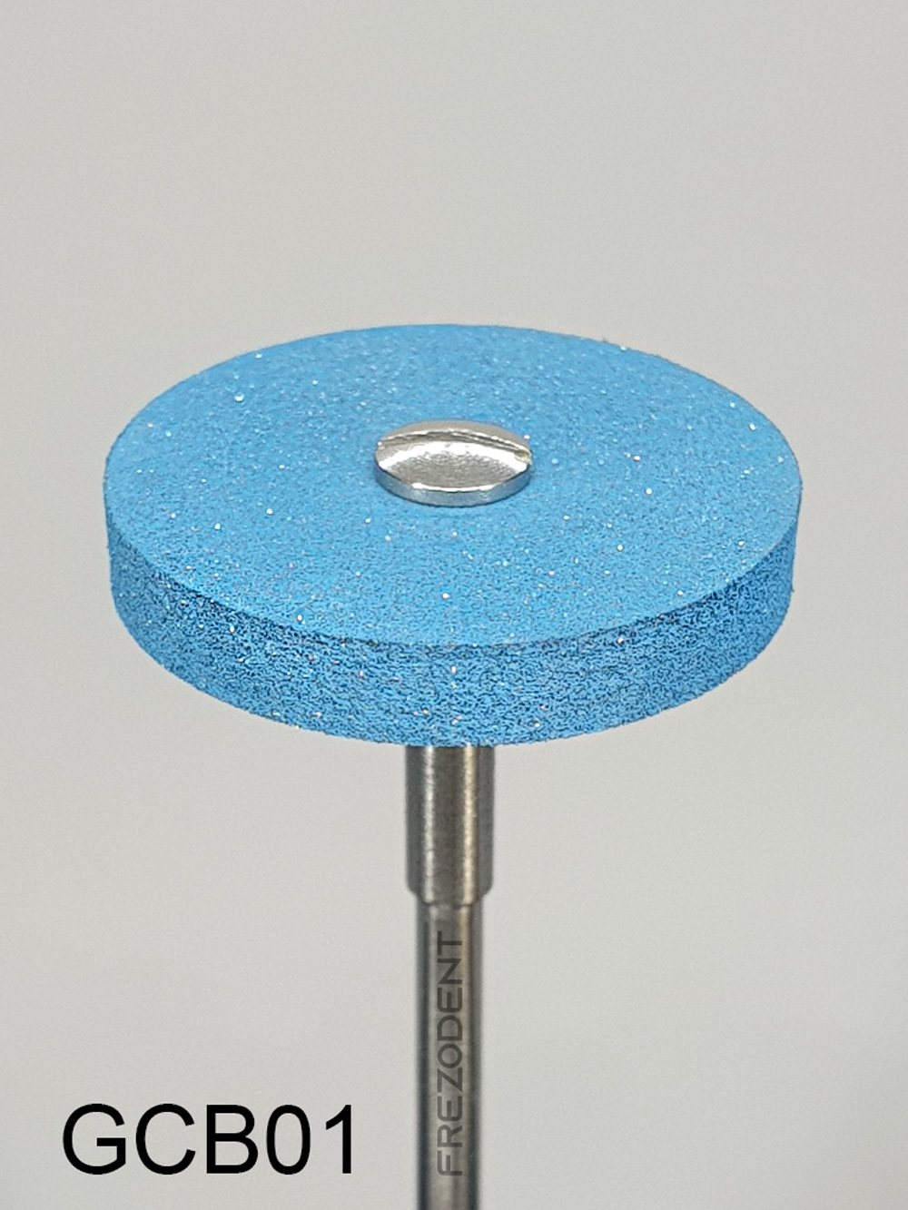 Gumka diamentowa GCB01 – średnio-gruba gradacja (niebieska) do wygładzania tlenku cyrkonu i ceramiki.