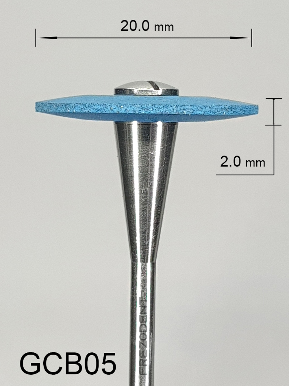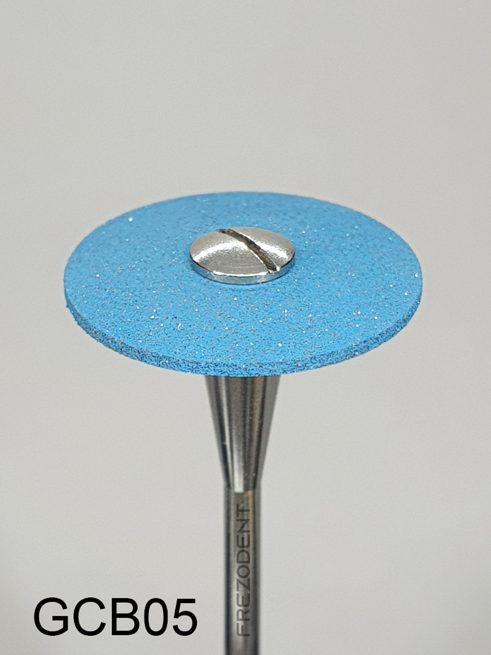 Gumka diamentowa GCB05 – średnio-gruba gradacja (niebieska) do wygładzania tlenku cyrkonu i ceramiki.