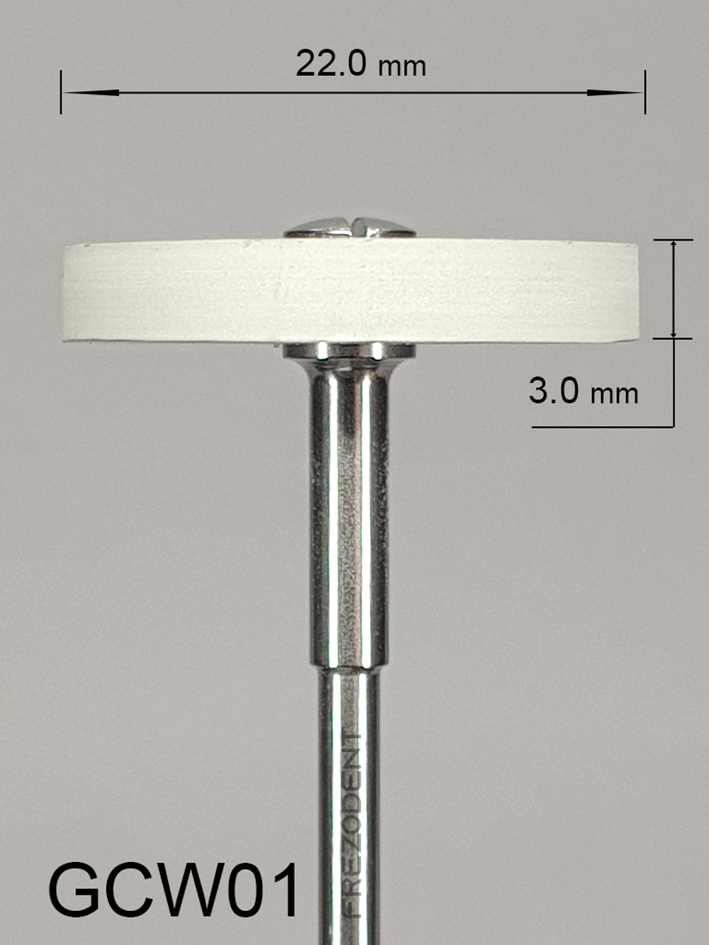 Gumka diamentowa GCW01 – bardzo drobna gradacja (biała) przeznaczona do finalnego nabłyszczania tlenku cyrkonu i ceramiki na wysoki połysk.
