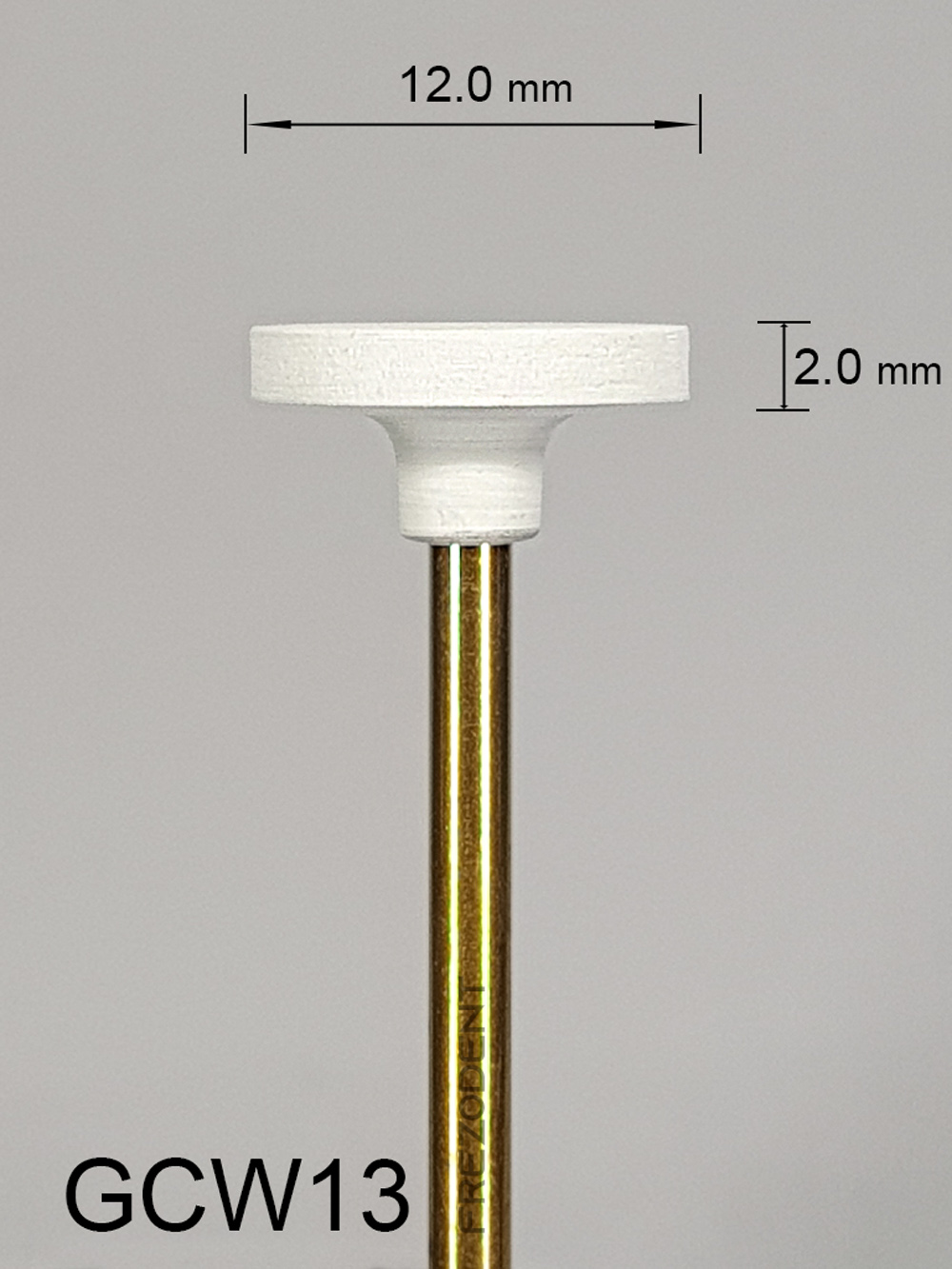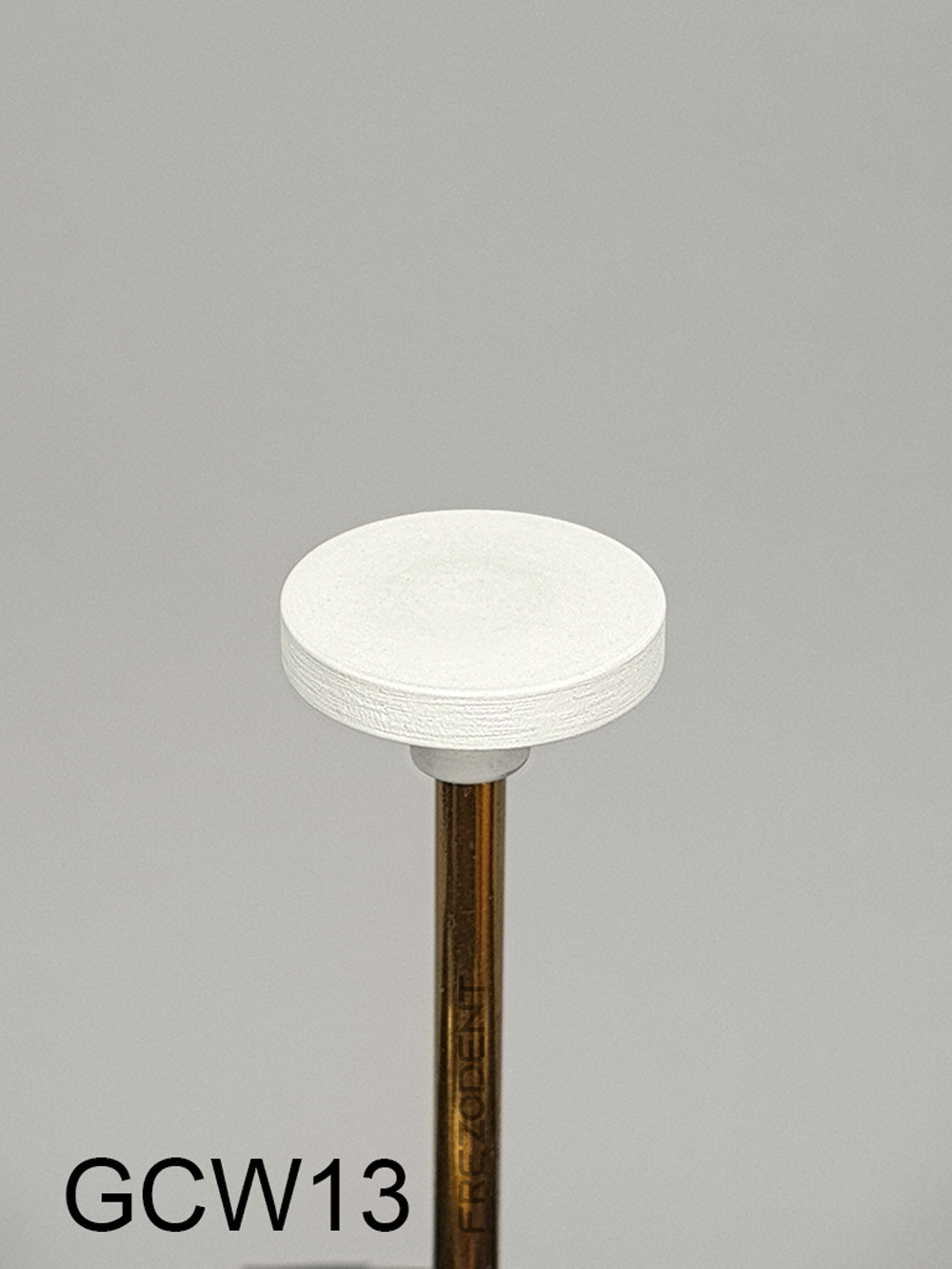 Gumka diamentowa GCW13 – bardzo drobna gradacja (biała) przeznaczona do finalnego nabłyszczania tlenku cyrkonu i ceramiki na wysoki połysk.