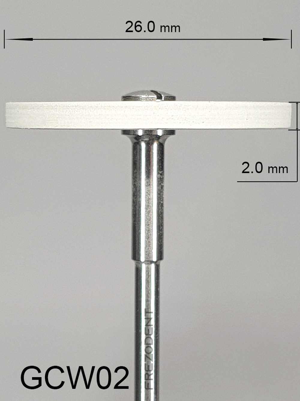 Gumka diamentowa GCW02 – bardzo drobna gradacja (biała) przeznaczona do finalnego nabłyszczania tlenku cyrkonu i ceramiki na wysoki połysk.