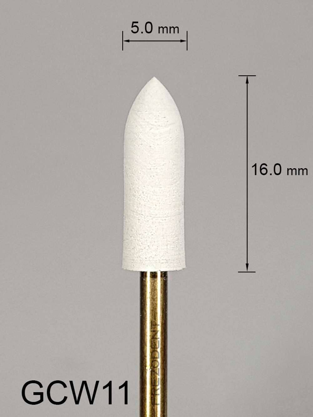 Gumka diamentowa GCW11 – bardzo drobna gradacja (biała) przeznaczona do finalnego nabłyszczania tlenku cyrkonu i ceramiki na wysoki połysk.