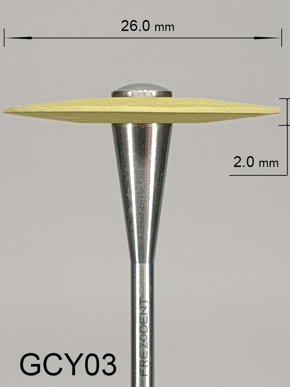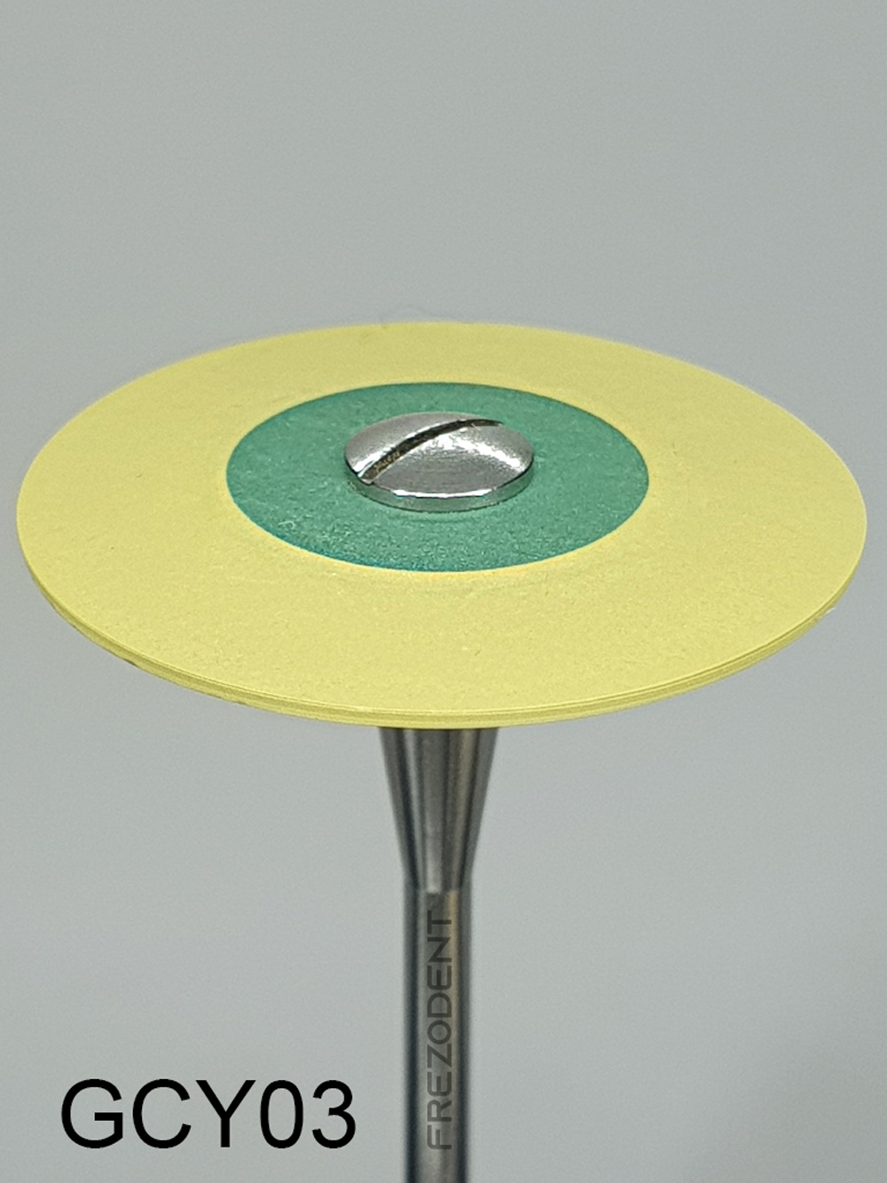Gumka diamentowa GCY03 – drobna gradacja (żółta) przeznaczona do nabłyszczania tlenku cyrkonu i ceramiki.