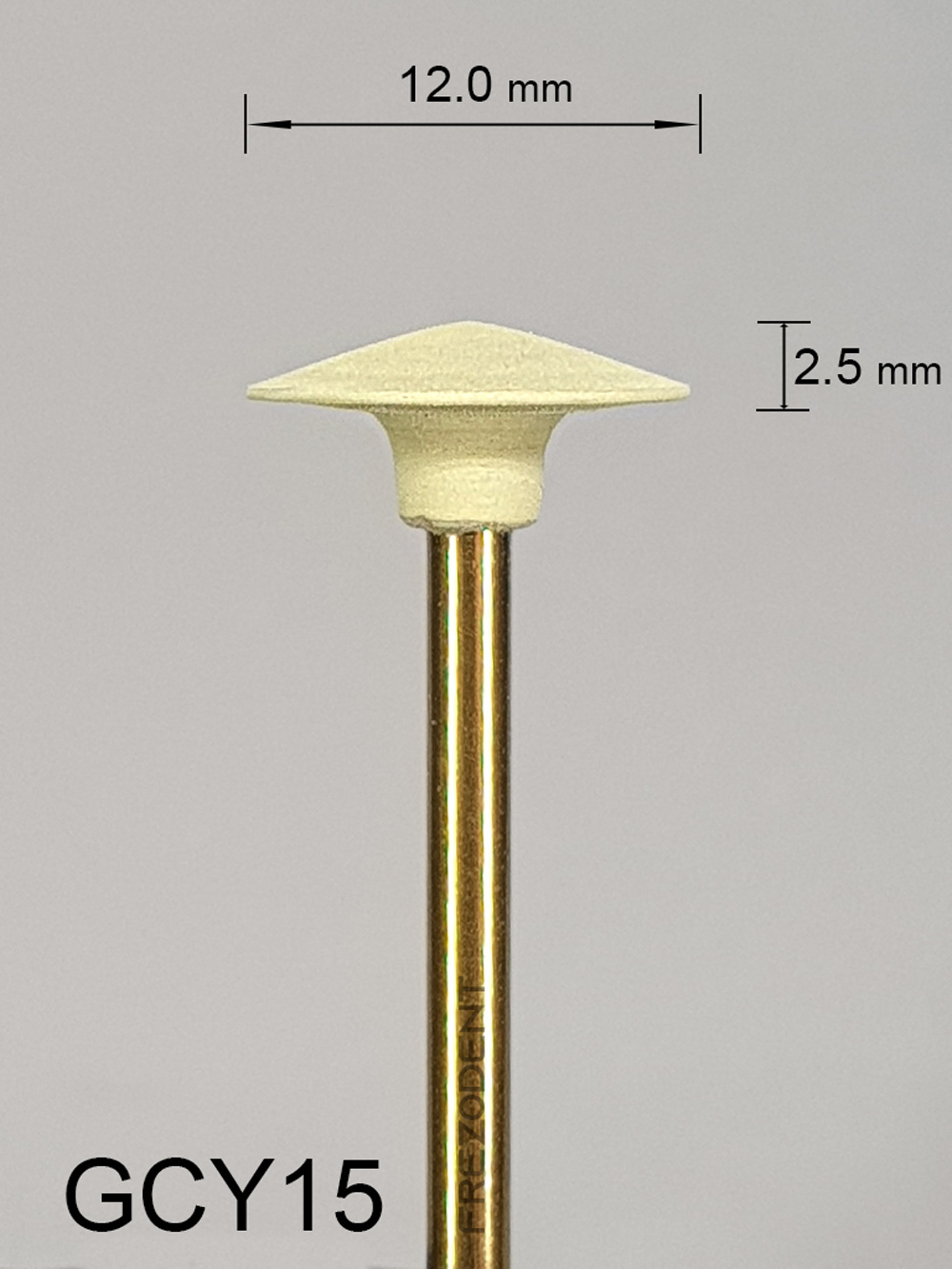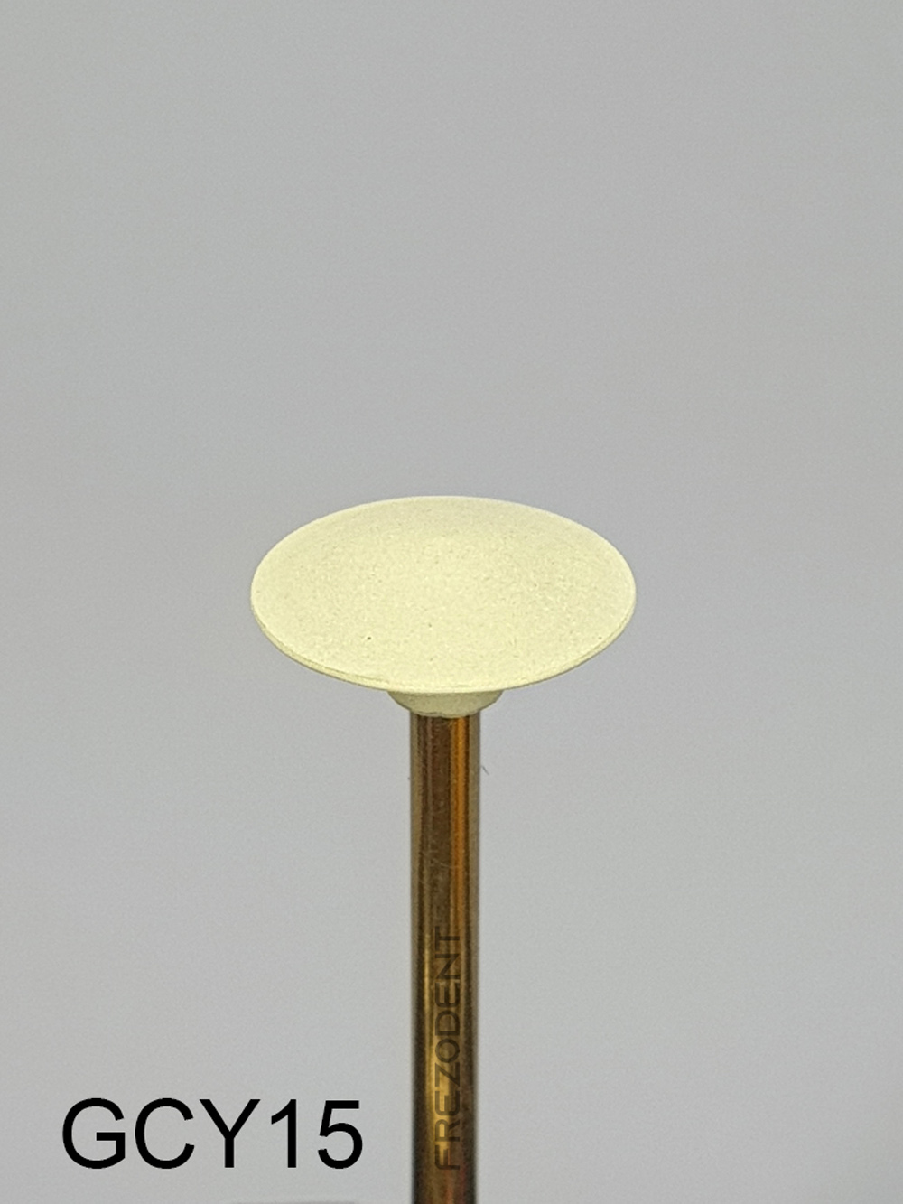 Gumka diamentowa GCY15 – drobna gradacja (żółta) przeznaczona do nabłyszczania tlenku cyrkonu i ceramiki.
