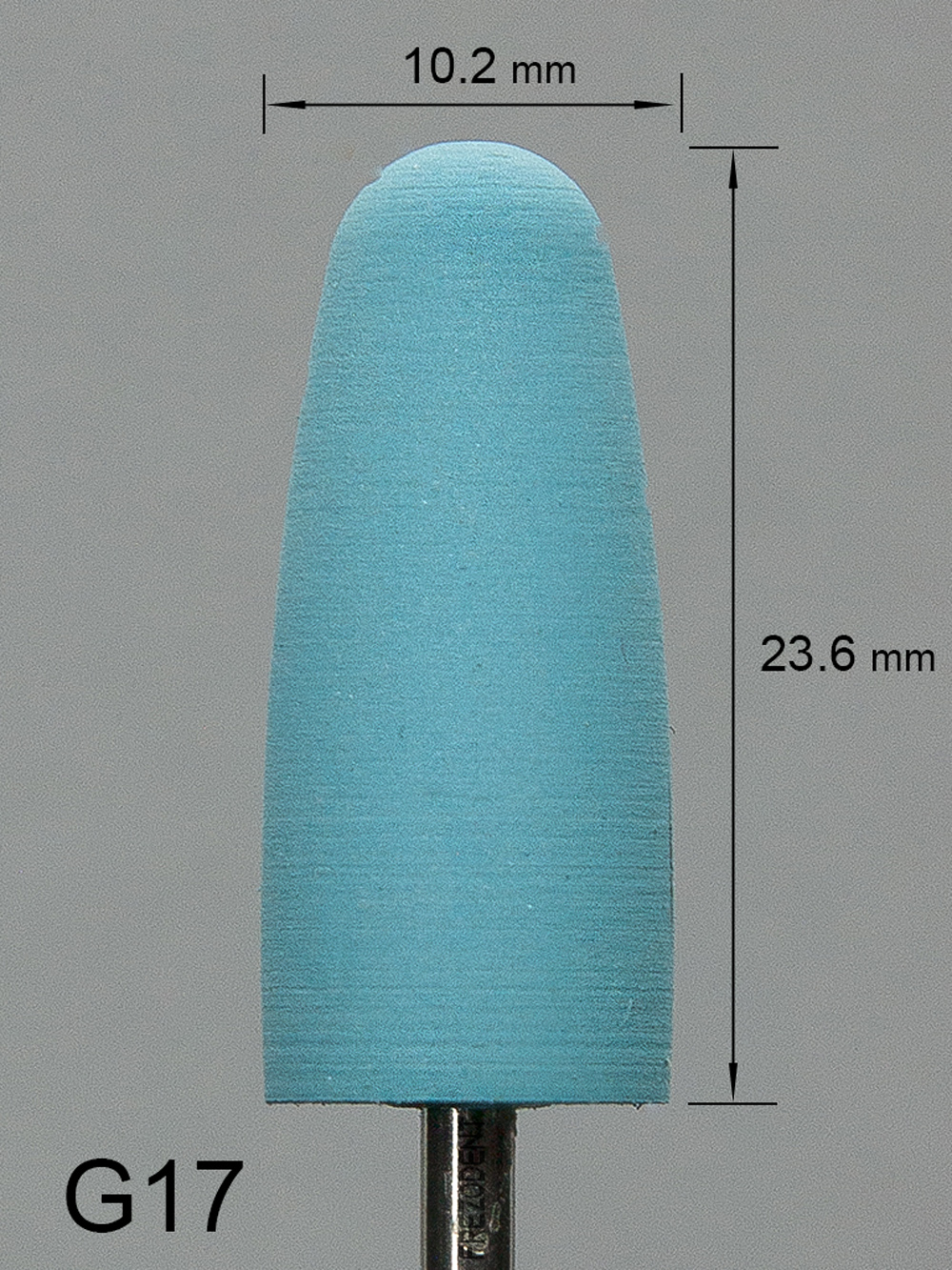 Gumka protetyczna G17 niebieska o drobnej gradacji – kształt długiej oliwki.