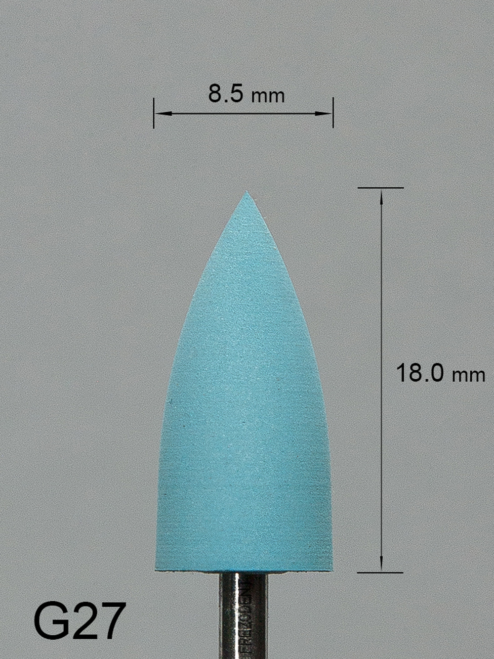 Gumka protetyczna G27 niebieska o drobnej gradacji – kształt stożkowy.