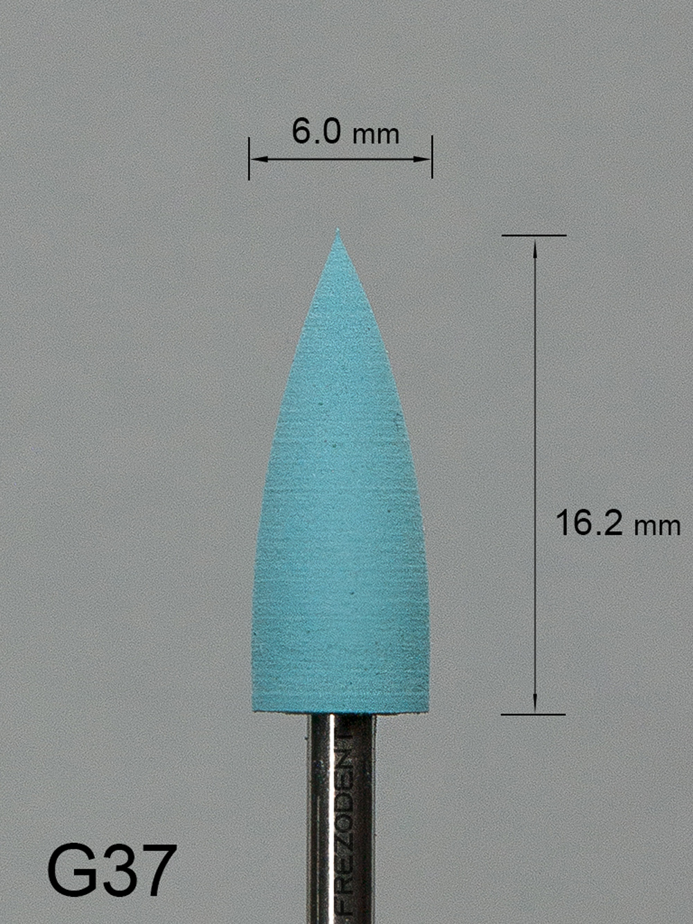 Gumka protetyczna G37 niebieska o drobnej gradacji – kształt stożkowy.