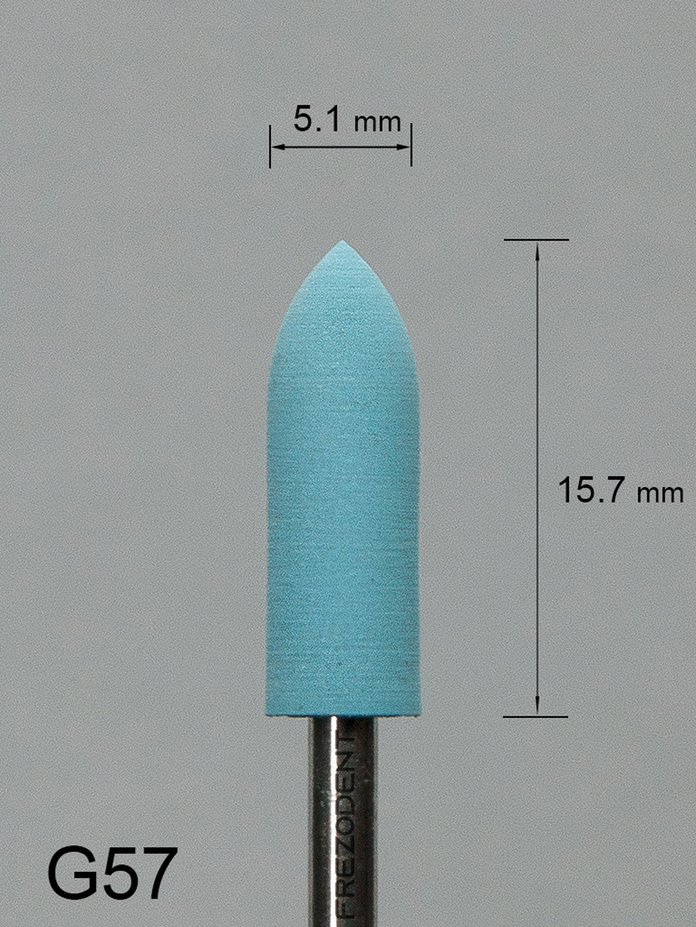 Dzięki stożkowej formie o wymiarach 5,1 x 15,7 mm, narzędzie pozwala na bardzo dokładne opracowanie szczegółów anatomicznych oraz trudno dostępnych miejsc w uzupełnieniach protetycznych. Specjalna struktura gumy gwarantuje delikatne usuwanie mikrozarysowań, przygotowując powierzchnię materiału do uzyskania ostatecznego, wysokiego połysku bez ryzyka przegrzania podłoża.