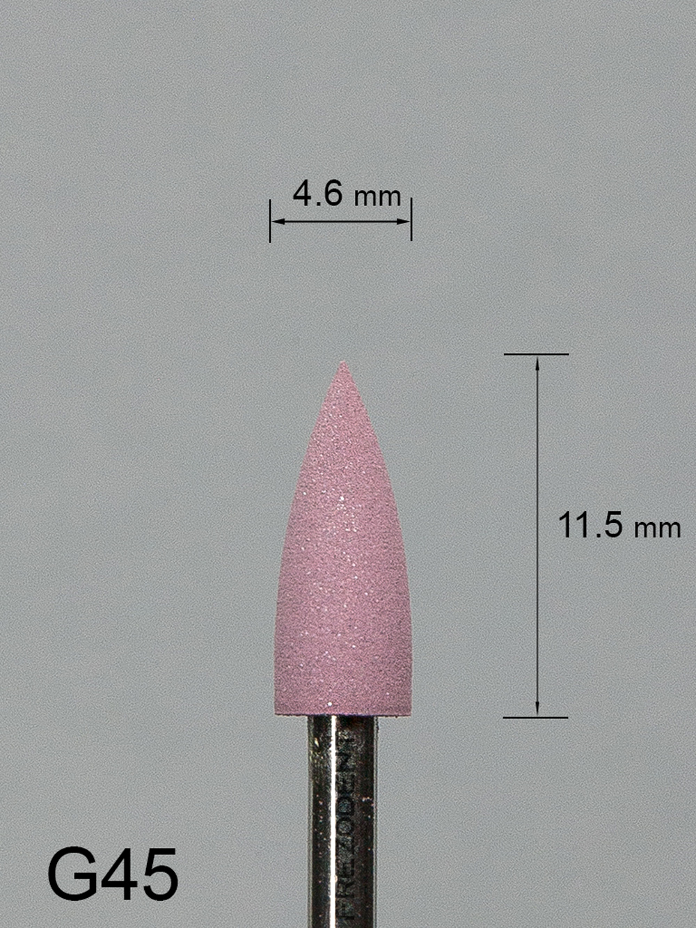 Dzięki stożkowej formie (4,6 x 11,5 mm) narzędzie precyzyjnie dopasowuje się do modelowanej anatomii, pozwalając na płynne przejście między bruzdami a guzkami. Specjalna struktura spoiwa gwarantuje, że gumka nie "zapycha się" podczas pracy z materiałami termoplastycznymi i nie przegrzewa delikatnej struktury porcelany, zapewniając idealnie przygotowaną powierzchnię pod finalny połysk.
